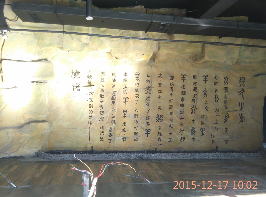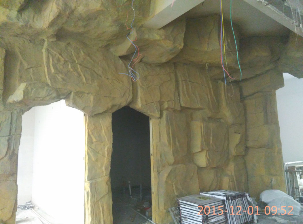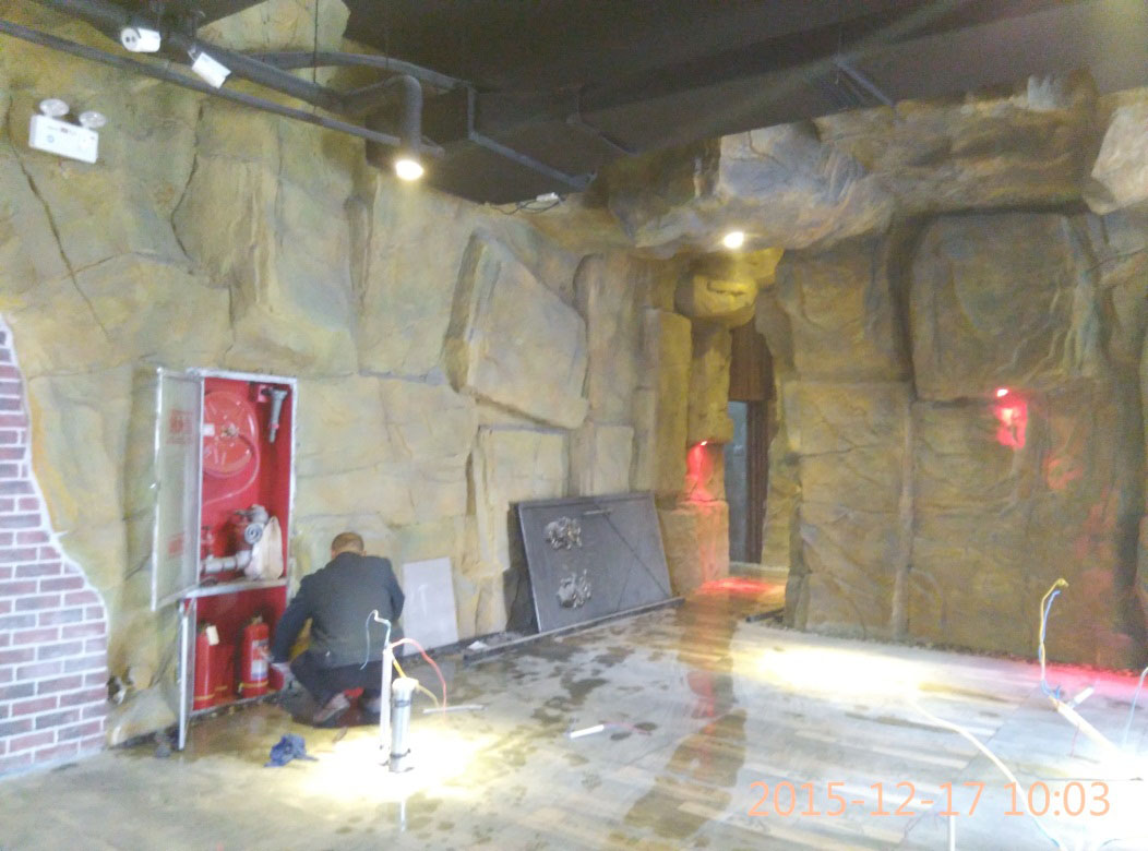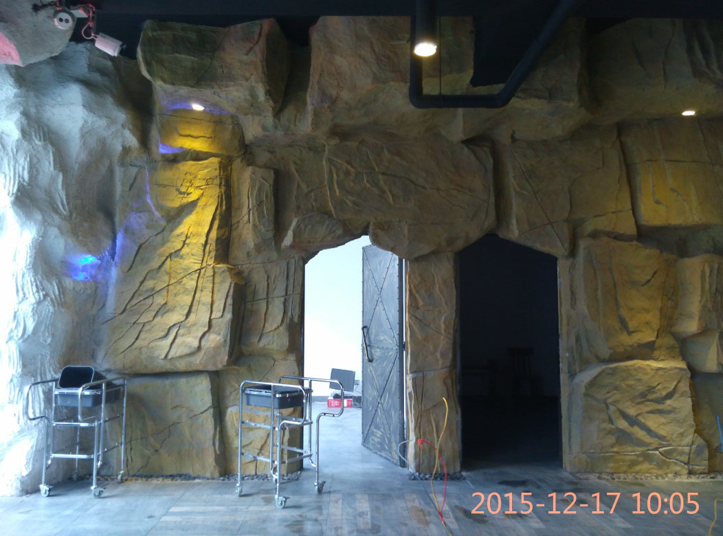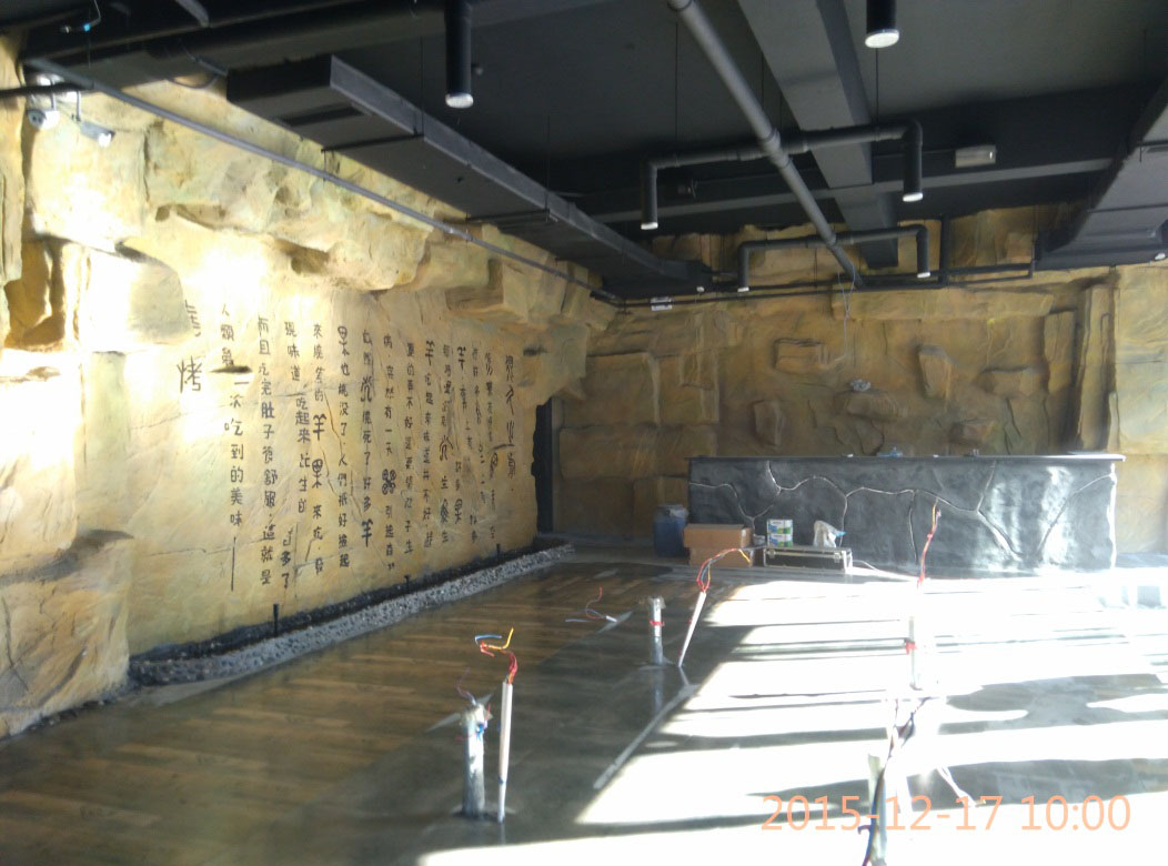 本項(xiàng)目從2015年10月28日開始施工,截止2015年12月6日順利竣工。地址位于濱州市黃河六路渤海十八路西200米路北。室內(nèi)假山裝飾部分,分為巖石假山、仿鐘乳石假山、仿溶洞效果三種風(fēng)格?,F(xiàn)為濱州市唯一一家大型原生態(tài)風(fēng)格自助室內(nèi)燒烤城。